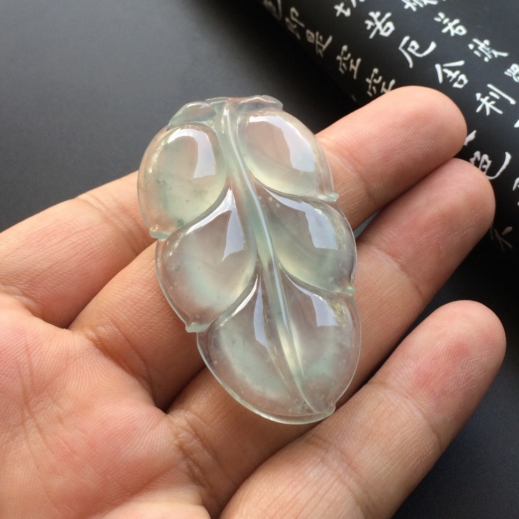 首页 >> (超值推荐)冰种略飘花玉叶挂件