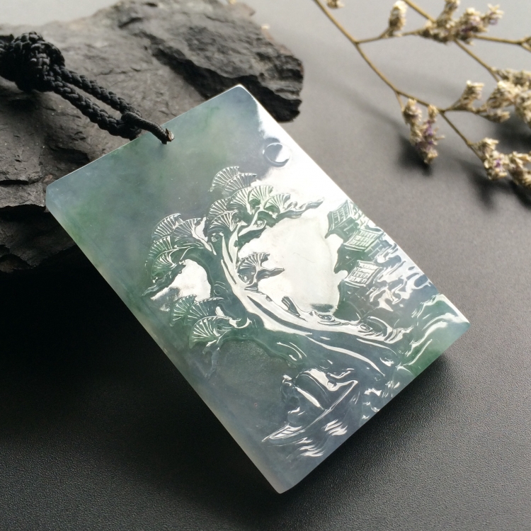 首页 >> (超值推荐)冰种淡紫罗兰飘花松下怀远挂件