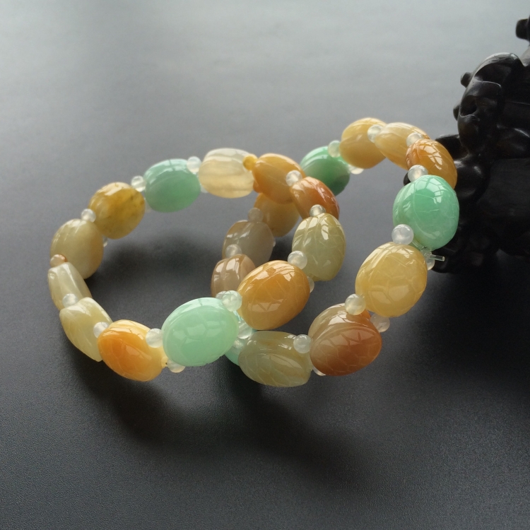 首页 >> (超值推荐)糯冰种黄翡/晴水龟壳手链(单价)