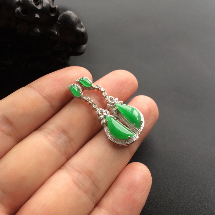 首页 >> (超值推荐)糯冰种阳绿镶白金钻石随形耳坠