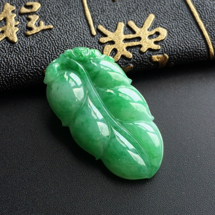 首页 >> (超值推荐)糯冰种飘翠玉叶挂件