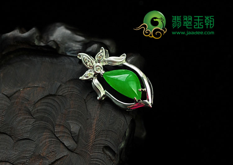 冰种正阳绿满绿缅甸翡翠包白金水滴胸坠(真钻)