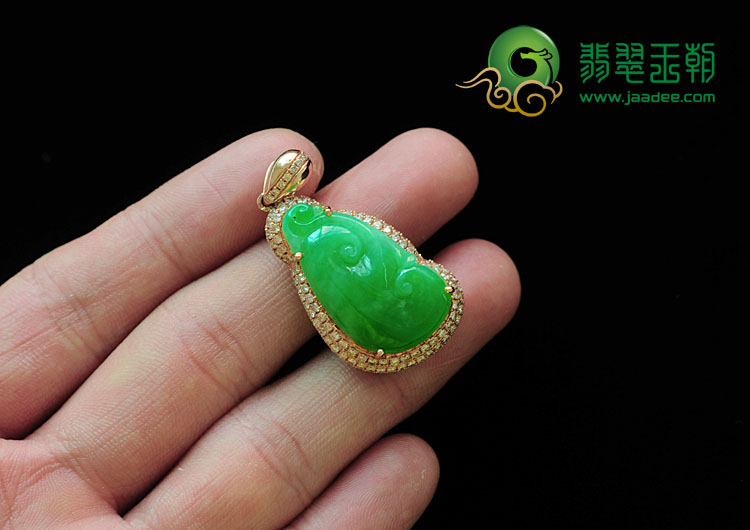 冰种正阳绿缅甸翡翠包玫瑰金如意挂件(真钻)