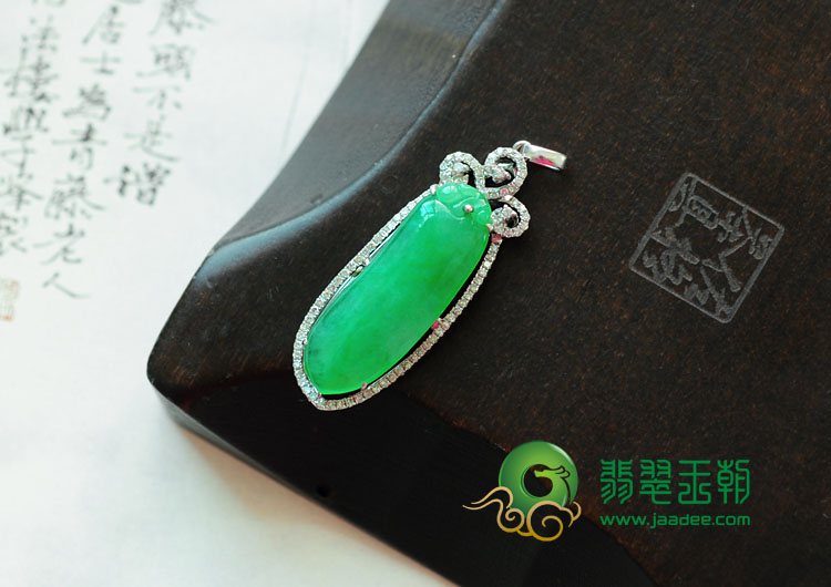 冰种苹果绿缅甸翡翠包白金福瓜挂件(真钻)