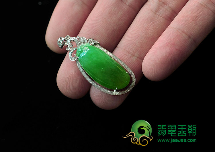 冰种黄秧绿缅甸翡翠包白金福瓜挂件(真钻)