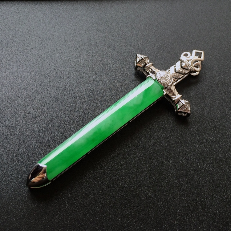 (超值推荐)糯冰种飘翠辟邪剑胸坠