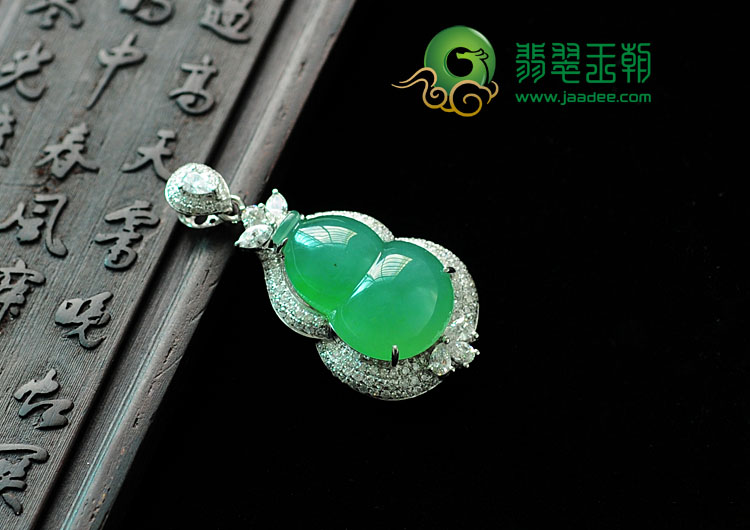 冰种绿晴水缅甸翡翠包白金葫芦胸坠(真钻)