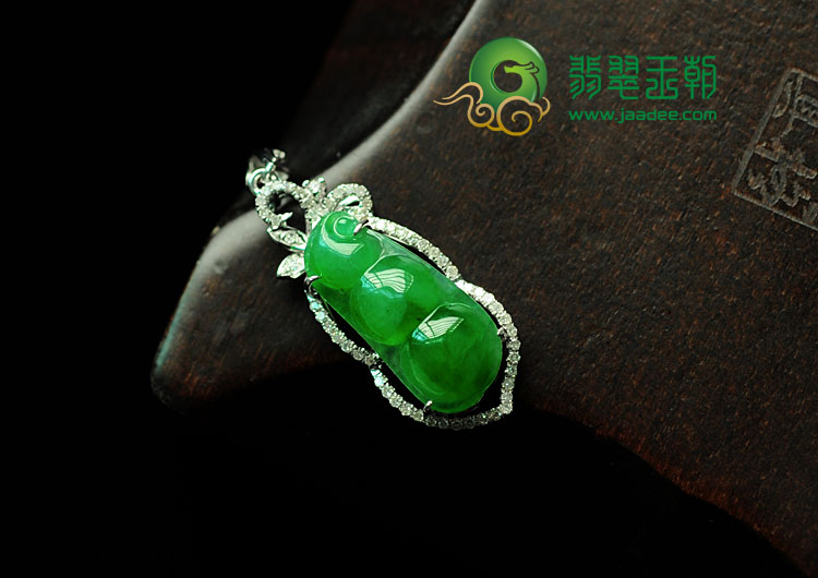 冰种苹果绿缅甸翡翠包白金四季豆挂件(真钻)