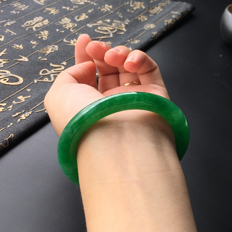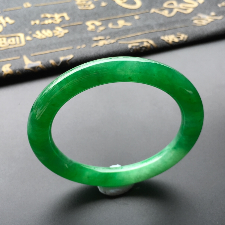 首页 >> (超值推荐)糯冰种阳绿圆条手镯(53mm)