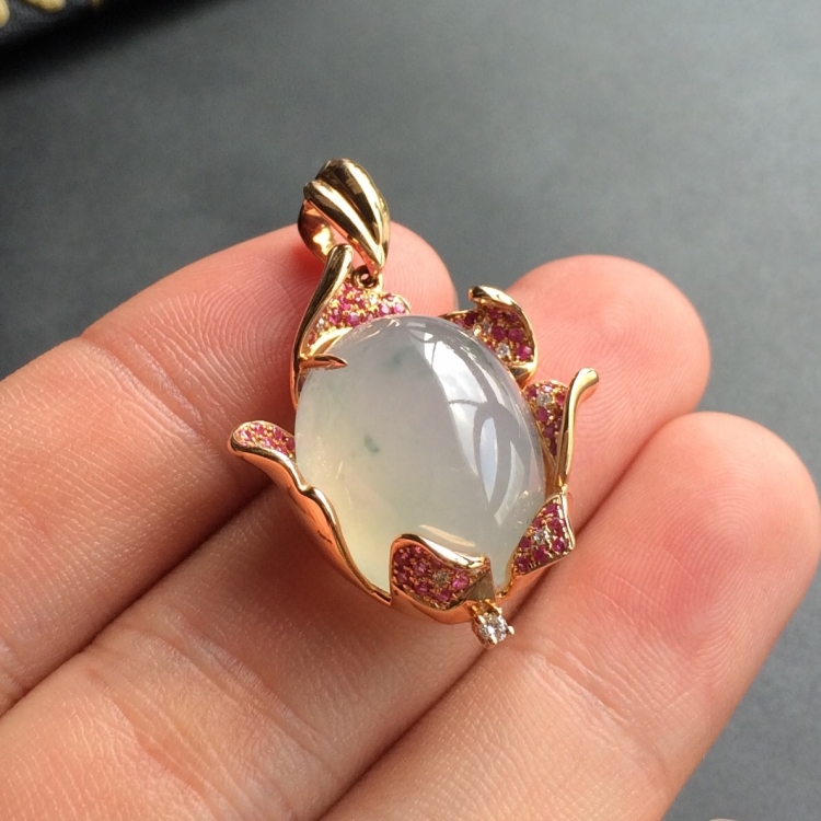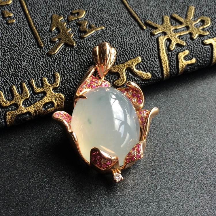 (超值推荐)冰种飘花镶玫瑰金胸坠