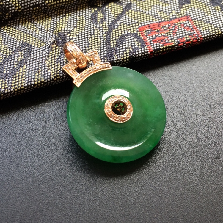 首页 >> (超值推荐)冰种翠绿镶玫瑰金钻石平安扣胸坠