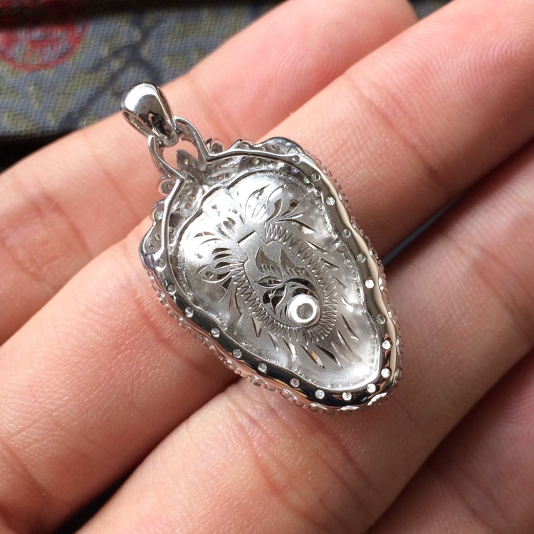 首页 >> (超值推荐)冰种阳绿镶白金钻石玉叶胸坠