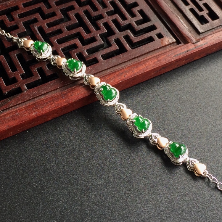 首页 >> (超值推荐)糯冰种阳绿镶白金钻石葫芦手链