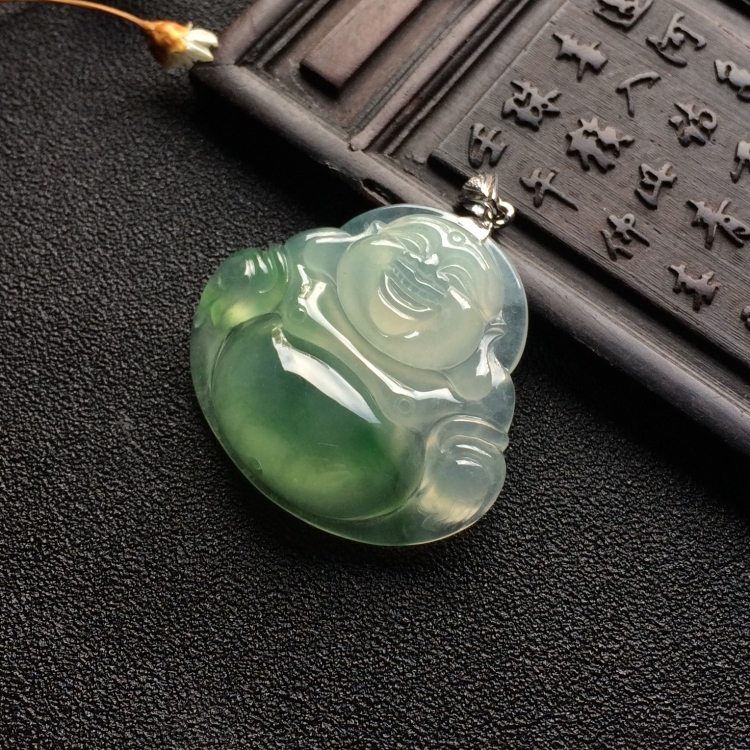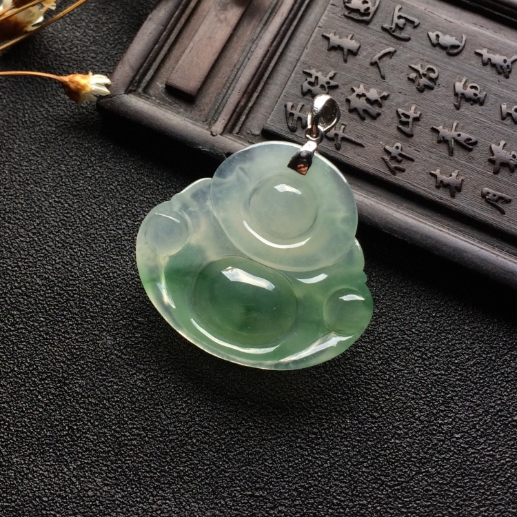 首页 >> (超值推荐)冰种飘花玉佛挂件(金扣)