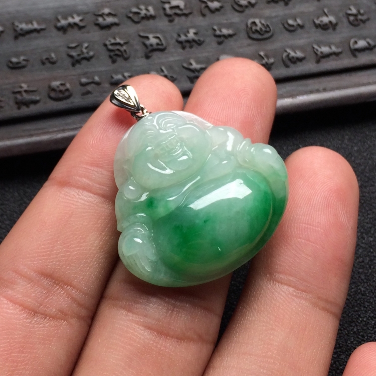 首页 >> (超值推荐)糯冰种飘翠玉佛挂件(金扣)