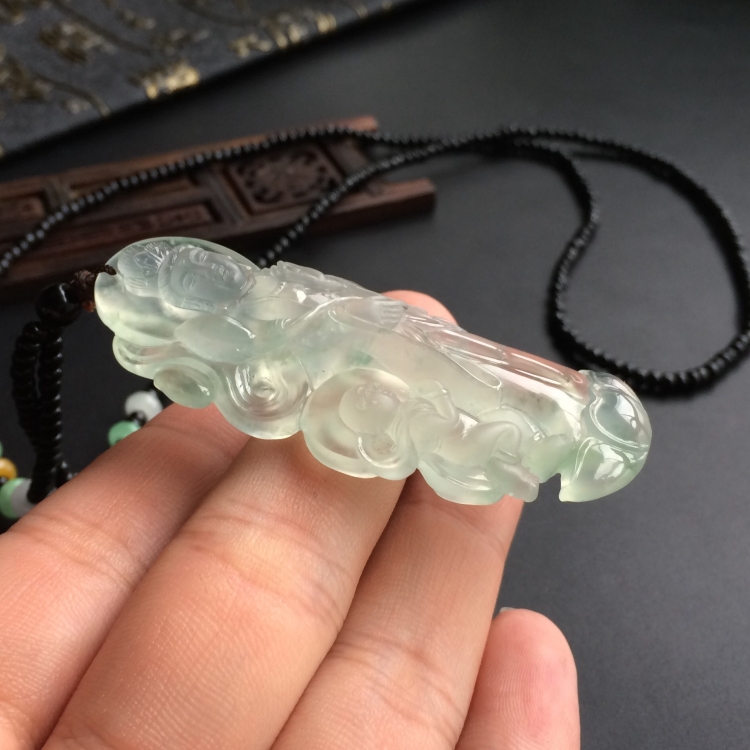 首页 >> (超值推荐)冰种晴水飘花童子拜观音挂件