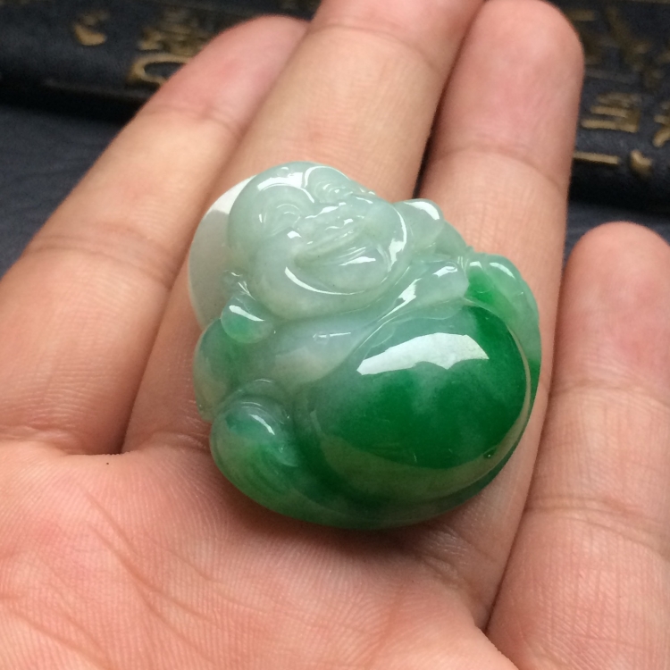 首页 >> (超值推荐)糯冰种飘阳绿玉佛挂件