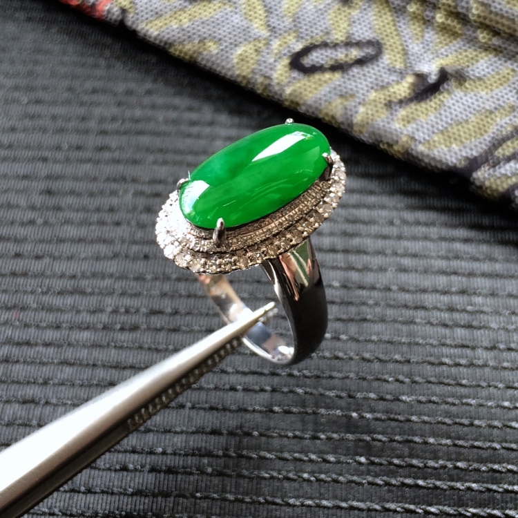 首页 >> (超值推荐)糯冰种阳绿镶白金钻石戒指