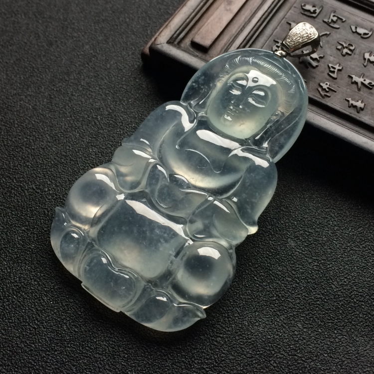 首页 >> (超值推荐)冰玻种淡晴水观音挂件(金扣)