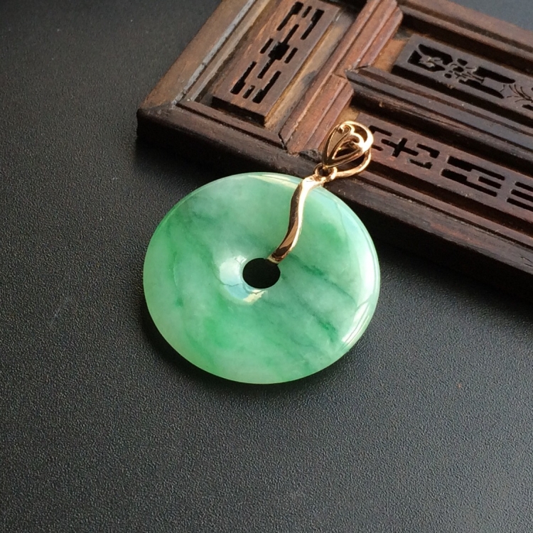 首页 >> (超值推荐)糯冰种飘花平安扣挂件(金扣)