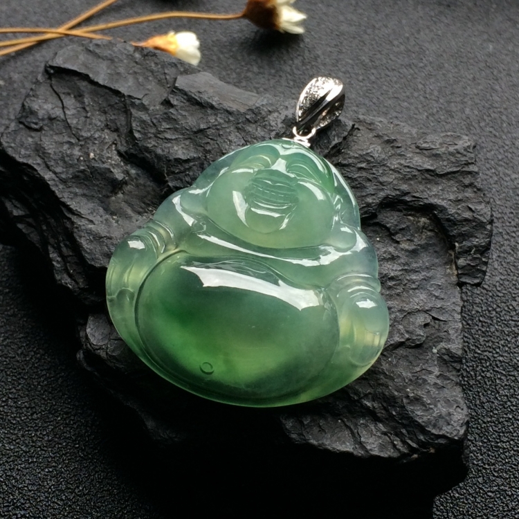 首页 >> (超值推荐)冰种飘花玉佛挂件(金扣)
