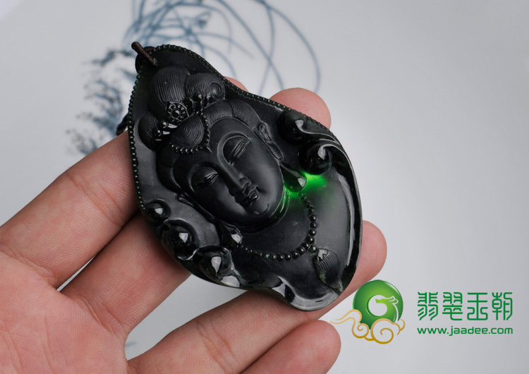首页 >> 冰种墨翠缅甸翡翠观音头挂件