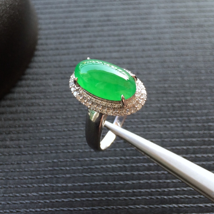 首页 >> (超值推荐)糯冰种翠色镶白金钻石戒指