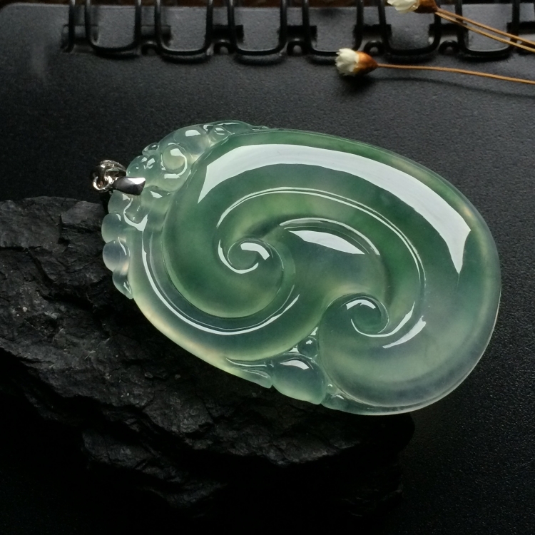 首页 >> (超值推荐)冰种飘花如意挂件(金扣)