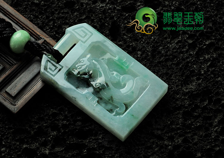糯冰种飘花缅甸翡翠仿古龙凤牌挂件