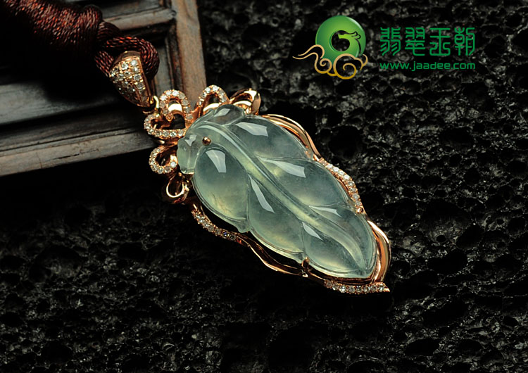 冰种缅甸翡翠镶玫瑰金金枝玉叶胸坠(真钻)